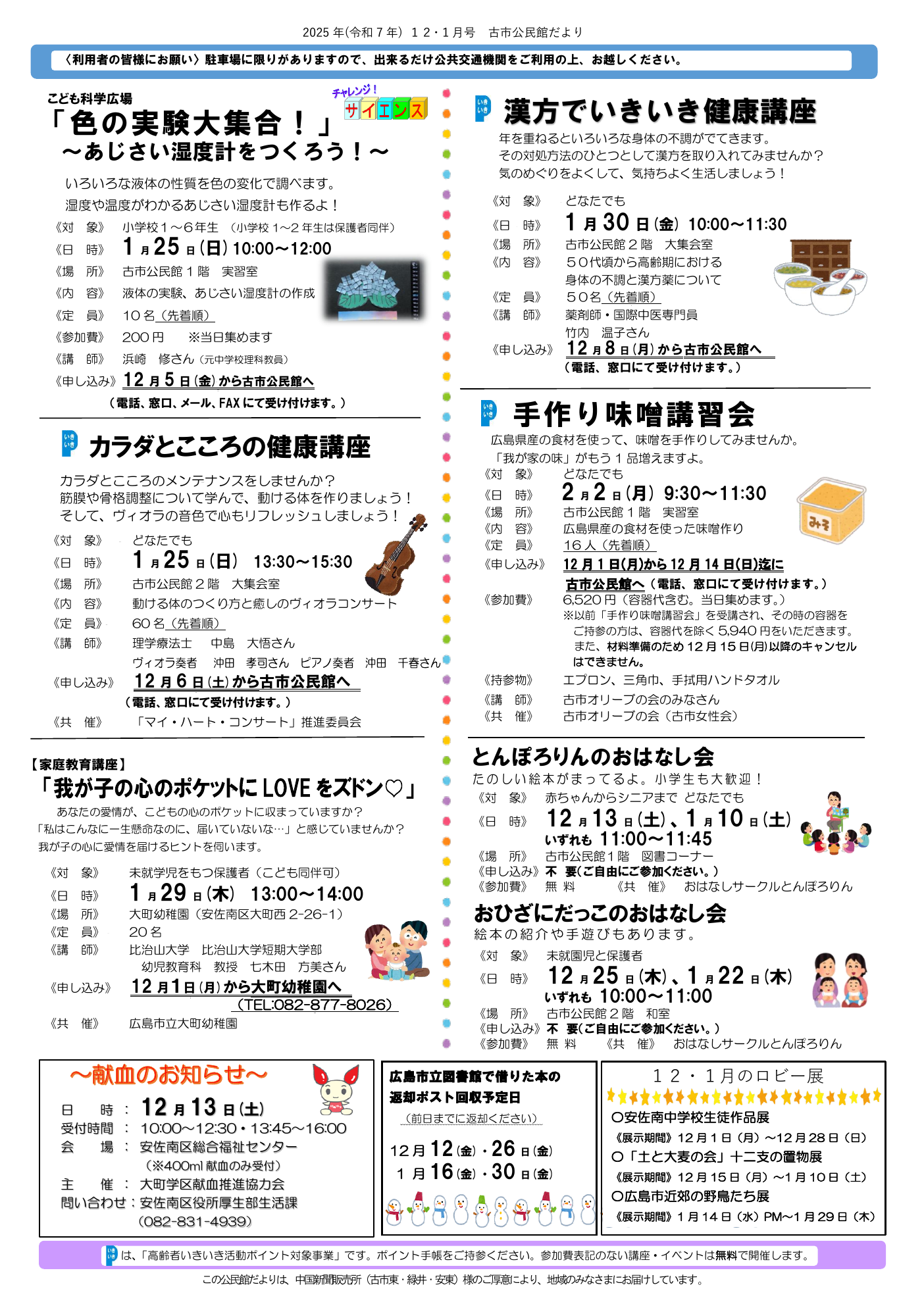 古市公民館の公民館だよりです。どうぞご覧ください。