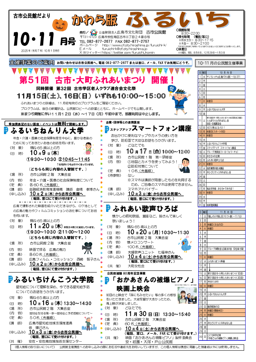 古市公民館の公民館だよりです。どうぞご覧ください。