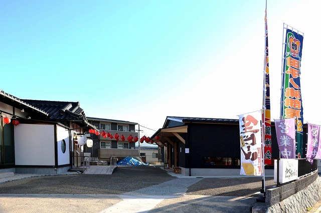 稽古道場 右横奥が稽古道場です 田子の浦部屋の幟 稽古場入口