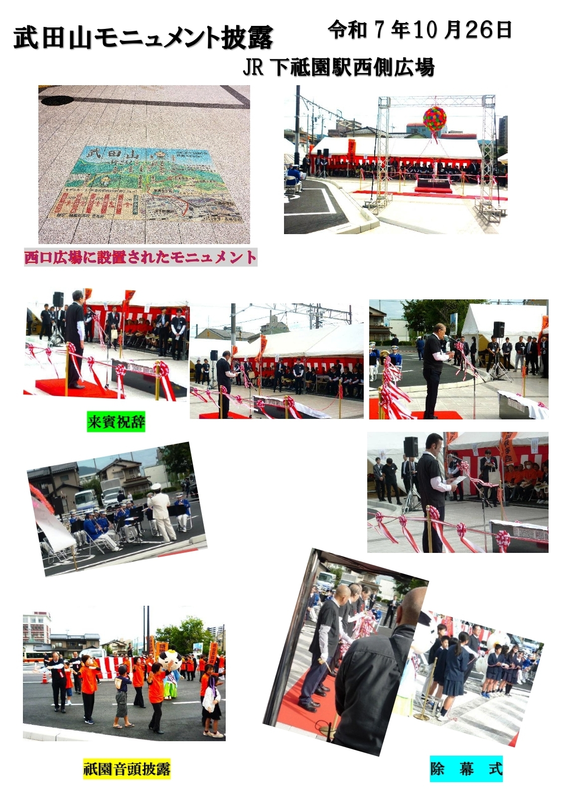 モニュメントは武田山の武田氏に由来する史跡や登山道が記されたタイル製で翌10月27日、直接路面に埋め込まれた。