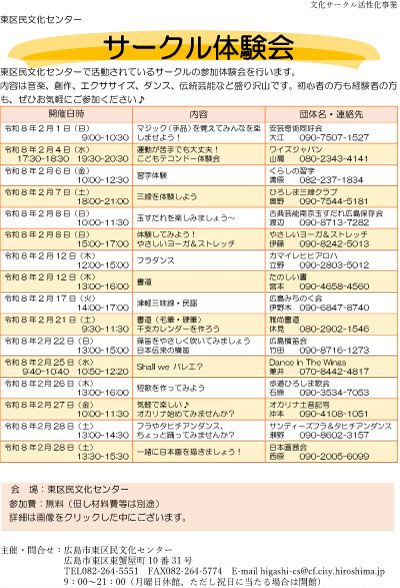 上記の主催事業の予約・申込はコチラから