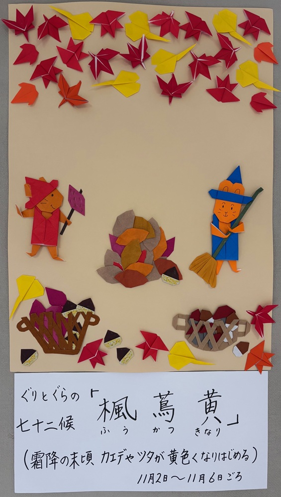 - 月替わりで図書室に掲示しています。 提供:折り紙ボランティア創