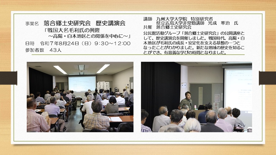 落合郷土史研修会 歴史講演会「戦国大名毛利氏の興隆~高陽・白木地区との関係を中心に~