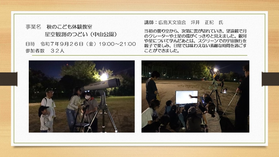 秋のこども体験教室 星空観測のつどい(中山公園)