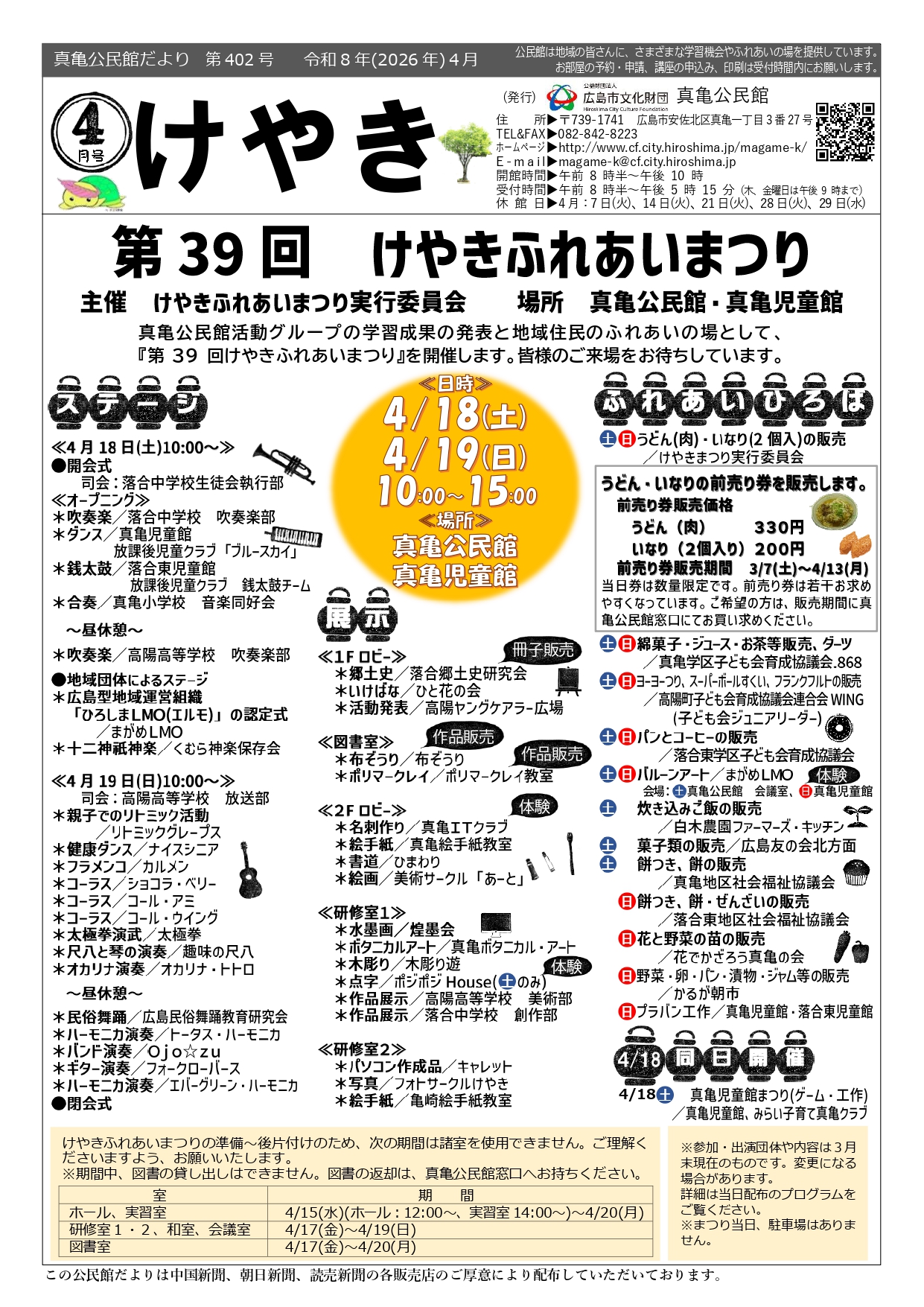 ※4月けやきふれあいまつりの準備~後片付けのため、4月17日(金)~20日(月)の期間中は図書室は使用できません。返却のみ事務室にて受け取ります。