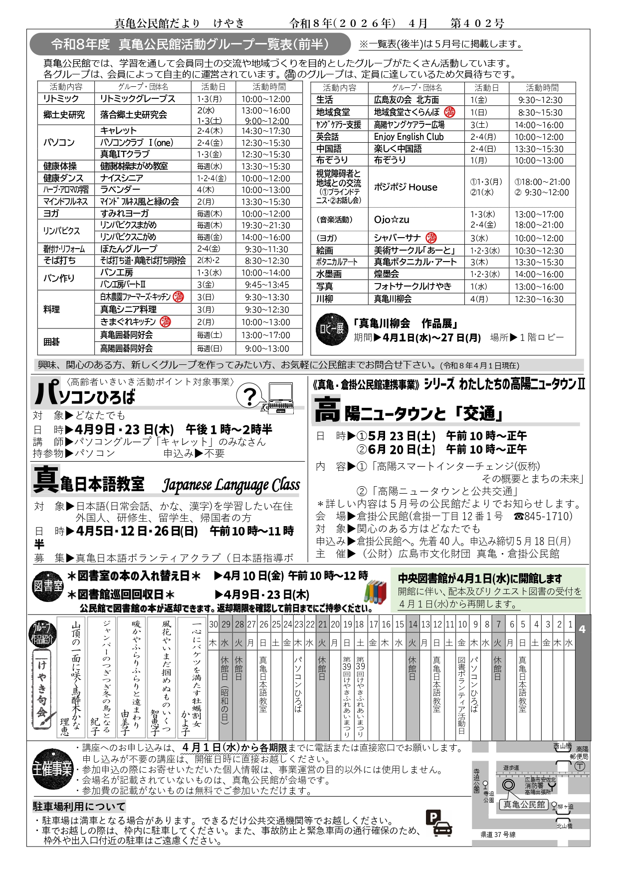 ■「真亀川柳会 作品展」期間:4月1日(水)~27日(月) 場所:1階ロビー