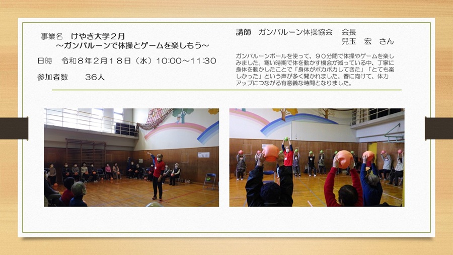 けやき大学 2月 ~ガンバルーンで体操とゲームを楽しもう~