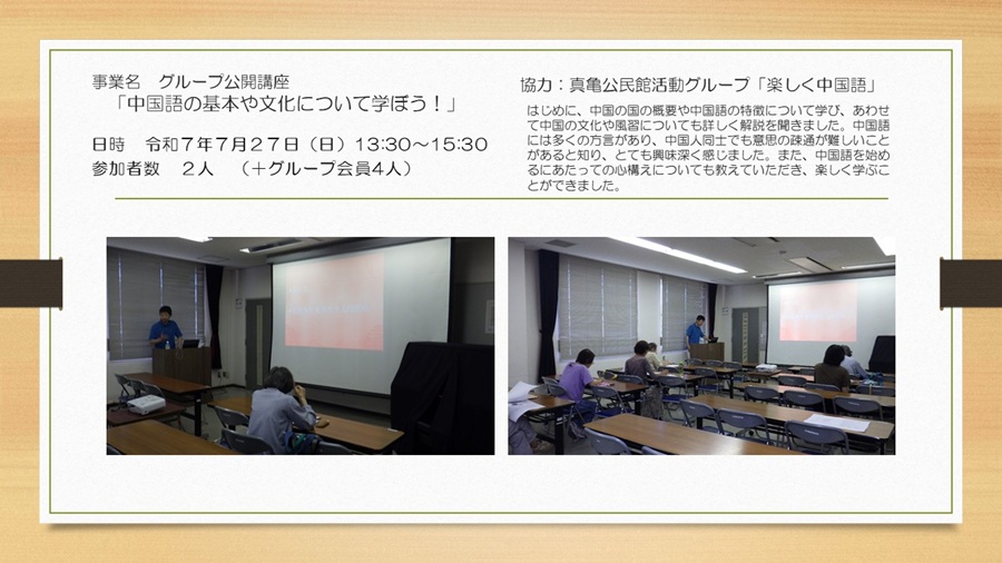 グループ公開講座「中国語の基本や文化について学ぼう!」
