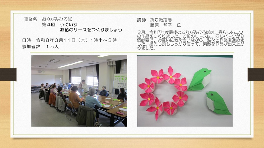 おりがみひろば 第4回 うぐいす お花のリースをつくりましょう
