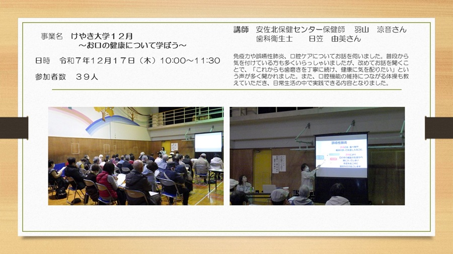 けやき大学 12月~お口の健康について学ぼう~