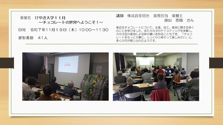けやき大学11月~チョコレートの世界へようこそ!~