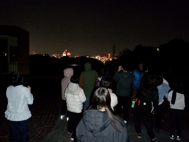 夕食後、屋上で星空観察を行いました。天気に恵まれ、惑星の木星や土星、冬の大三角や様々な星座、そして、素敵な夜景などを見ることができました。