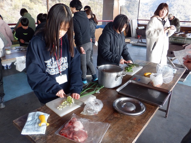 ・山から竹を切り出した時や、野外炊飯で豚汁を作った時に、みんなで協力して目標を達成することができました。2日間ありがとうございました。いっぱいお話してくださり、ありがとうございました。