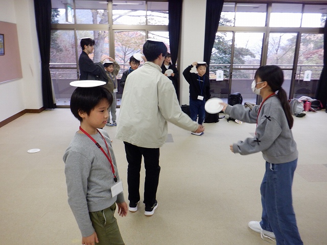 1日目、まず「はじめのつどい」で、和やかな雰囲気になるよう楽しいゲームなどをしました。