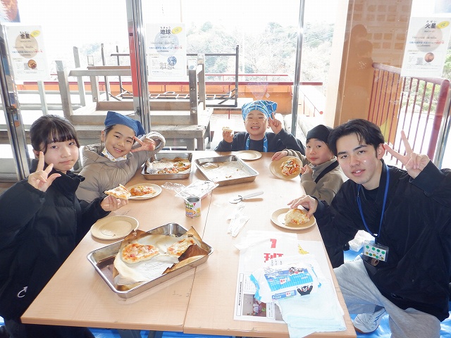 ・初めてペットボトルでピザを作ってみて、すごく楽しかったし、おいしかったです。あと、キャンドルサービスも楽しかったし、いろいろしたことのない体験とかをありがとうございました。楽しかったです。