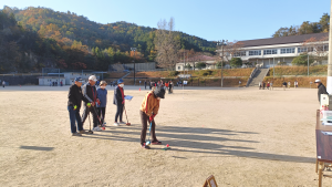 11月15日土曜日、心地よい晴天のもと、白木町体育協会連合会主催による、恒例の町民ふれあいグラウンドゴルフ大会が、高南小学校グラウンドを会場に開催されました。