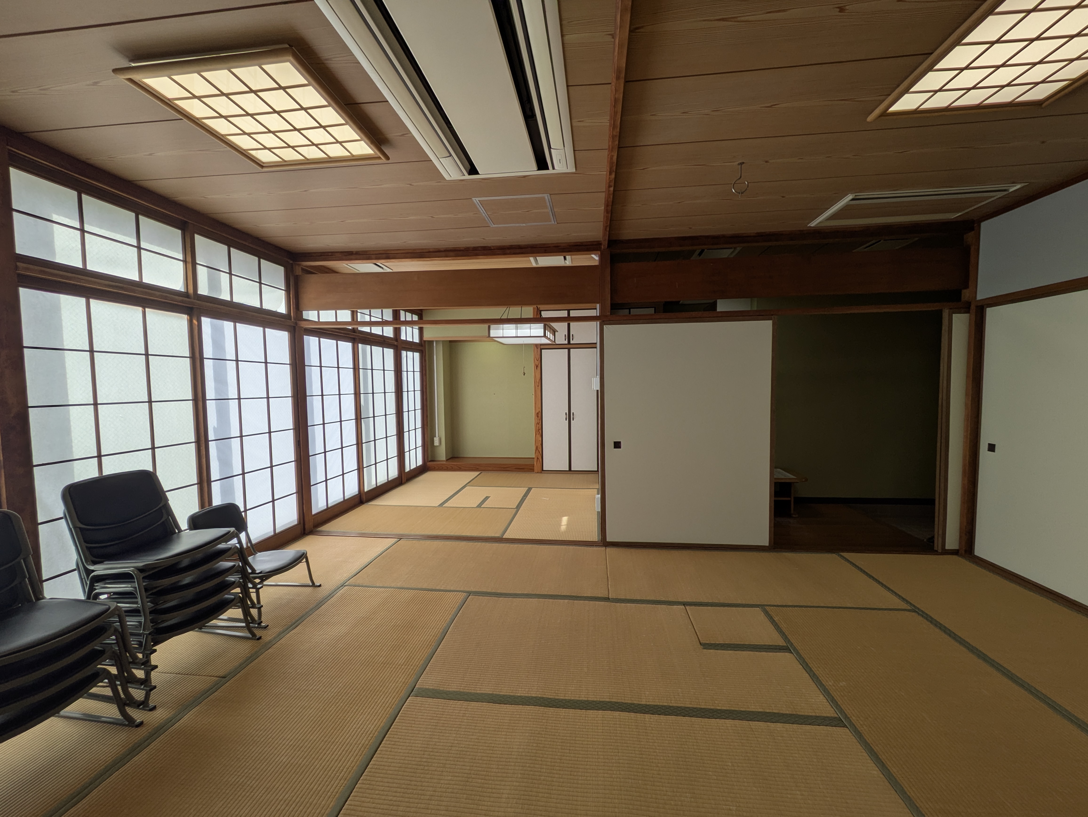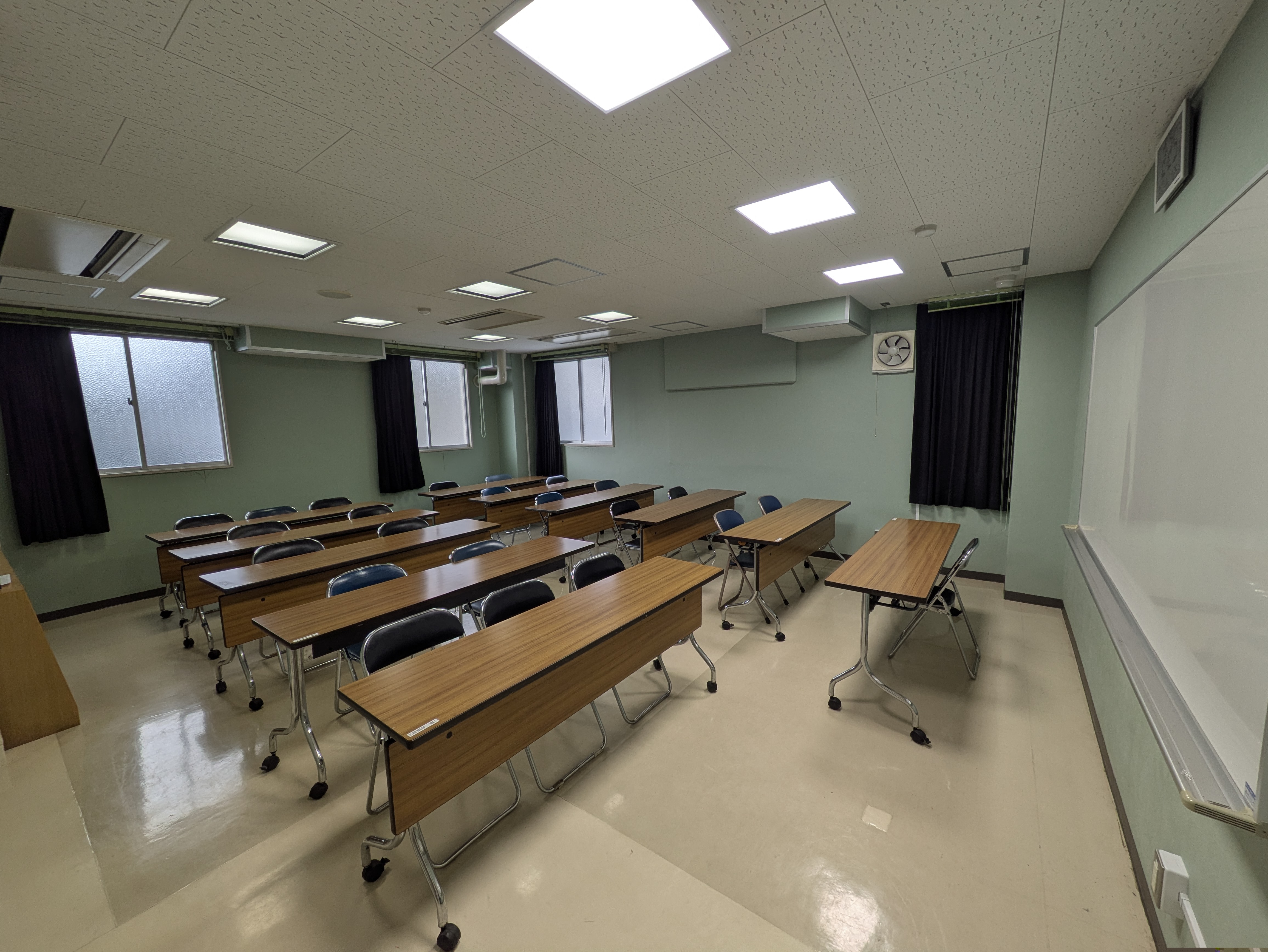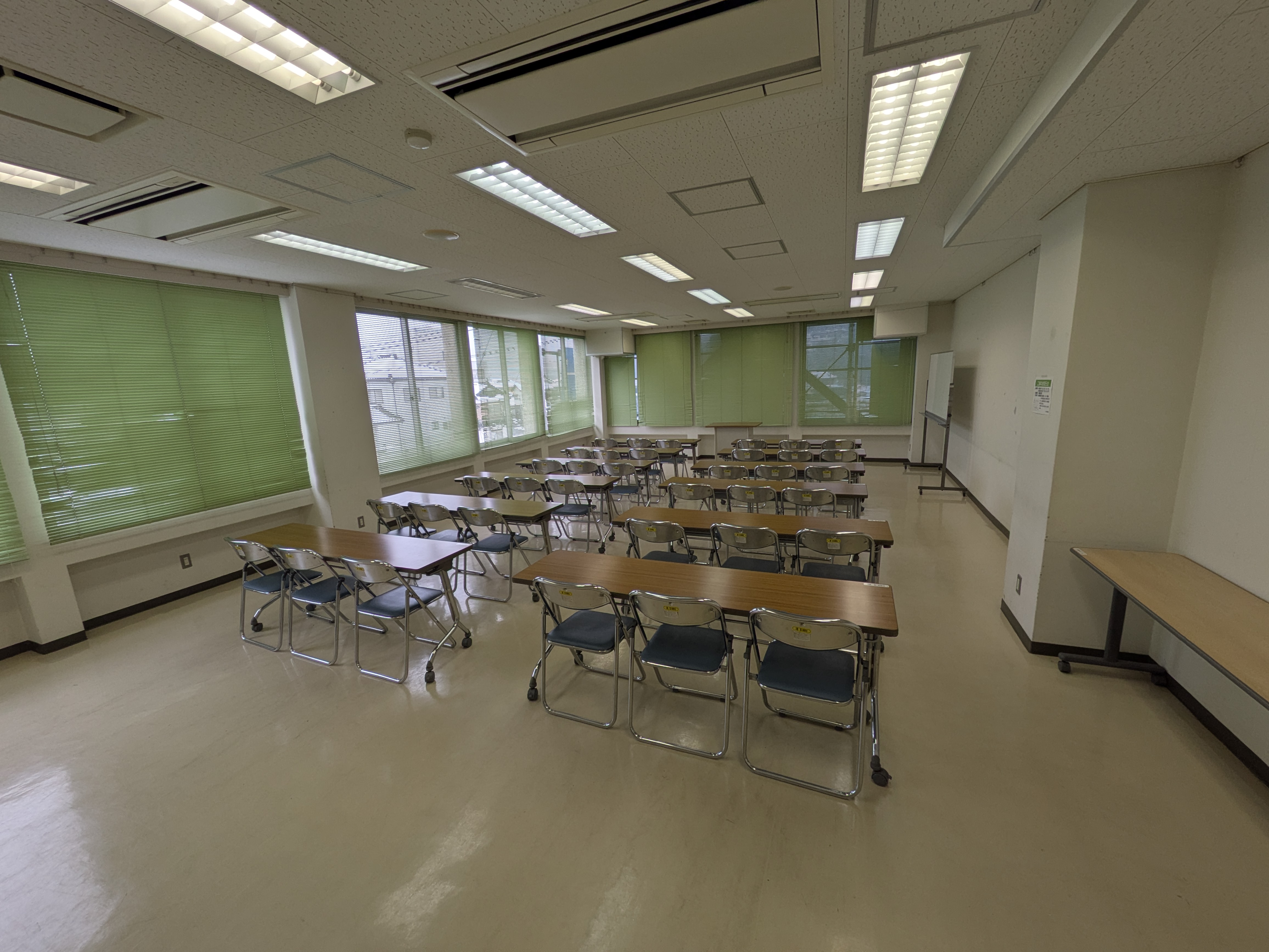 貸し部屋として第1研修室、第2研修室、会議室1、会議室2、実習室、第1和室、第2和室、ホールの8つの部屋があるほか、図書室、湯沸室などを整備しています。