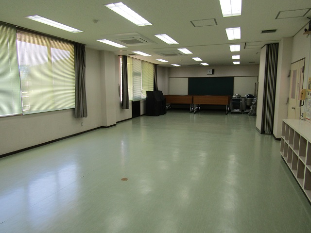 60人 | 研修会、講演会等の学習活動、各種会議など多目的に利用できます。 中央にアコーディオンカーテンの仕切りがあるので、2室に分けての利用もできます。 ※アップライトピアノがあります。 |
